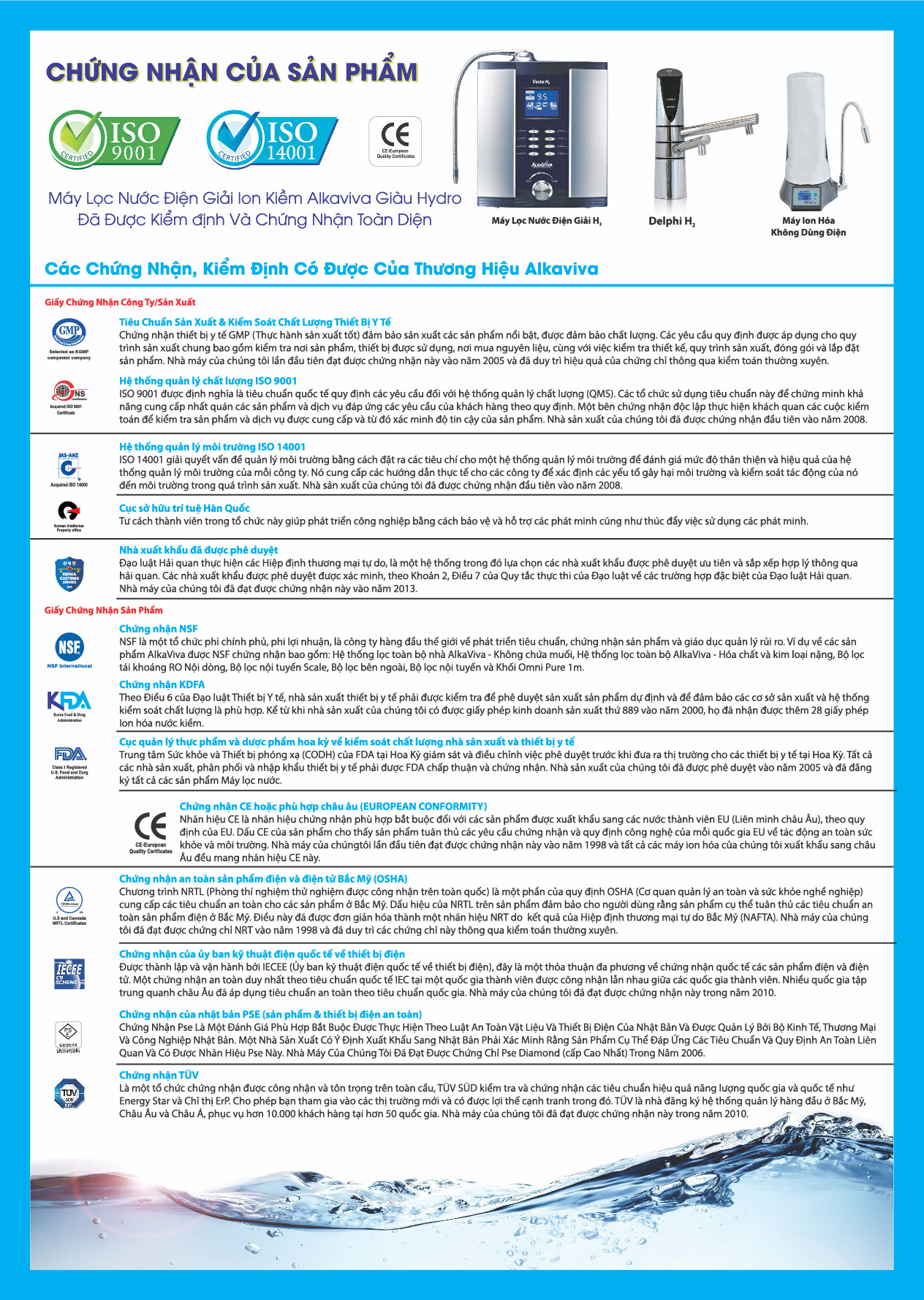 CÁC CHỨNG CHỈ QUAN TRỌNG CỦA ALKAVIVA VIET NAM