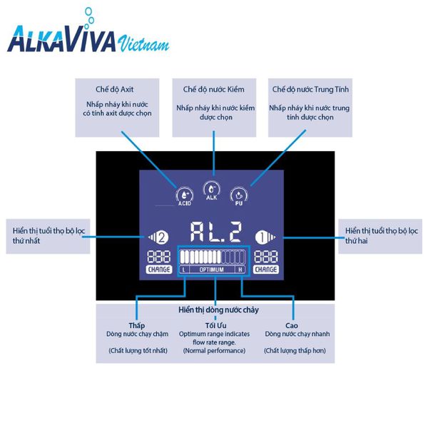 Tiện ích – Chỉ cần chạm vào màn hình cho phép bạn điều khiển dễ dàng và chính xác các chức năng của máy ion hóa